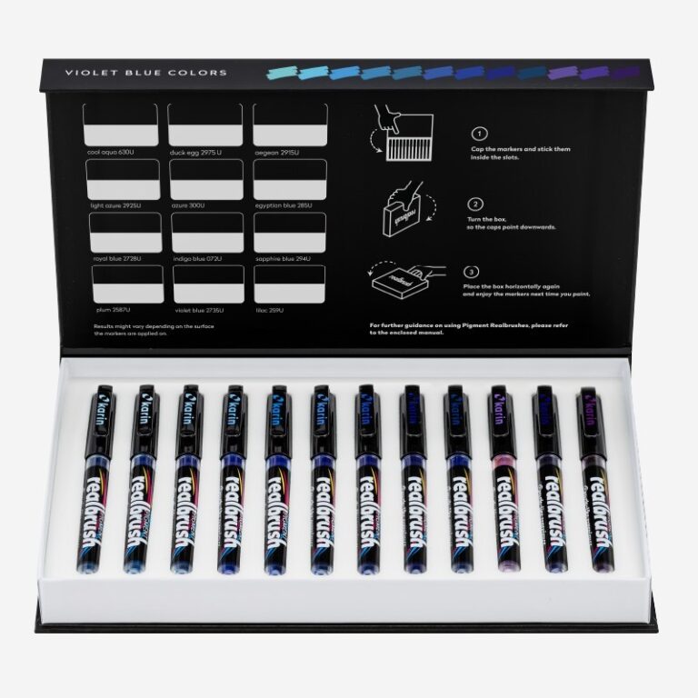 Karin Realbrush PIGMENT Acrylmarkers set van 12 – Violet-Blue Colors