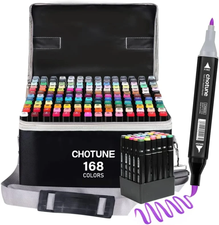 Chotune 168 kleuren Alcohol Markers Brush & Fine + etui