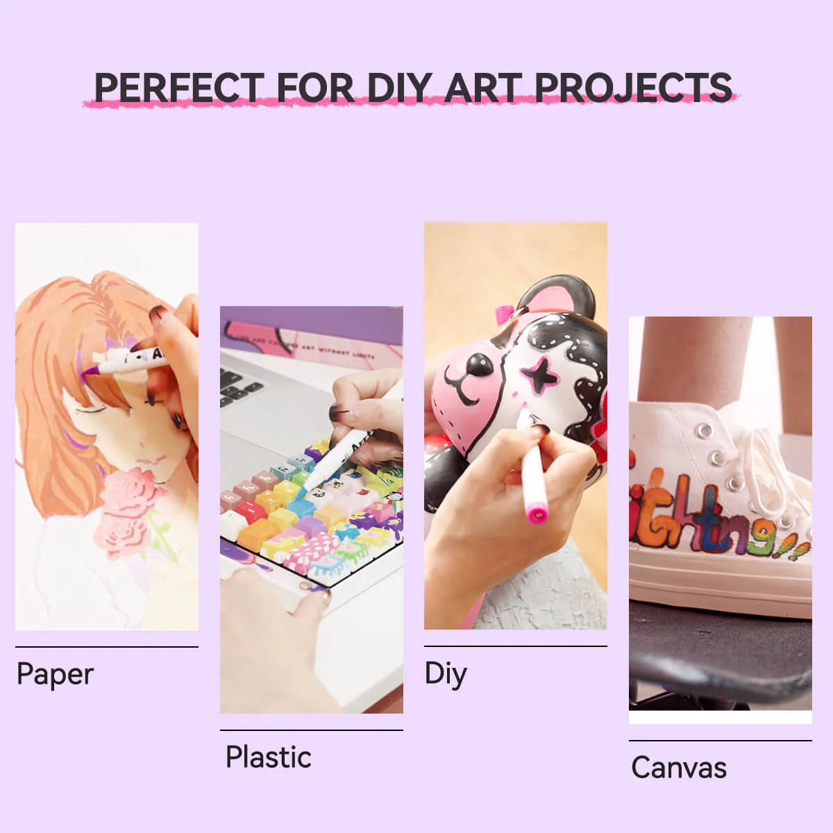 Arrtx acrylmarker werkt op papier, karton, metaal, rotsschilderingen, hout, plastic, canvas, stof, steen, paaseieren, paasdecoratie, metaal, kerstversiering, Halloween-pompoenschildering, kalligrafie, plakboek, penseelletters, kerstkaart, verjaardagscadeaus, wenskaarten of andere doe-het-zelf-knutselprojecten en meer. Laten we onze verbeelding uiten!