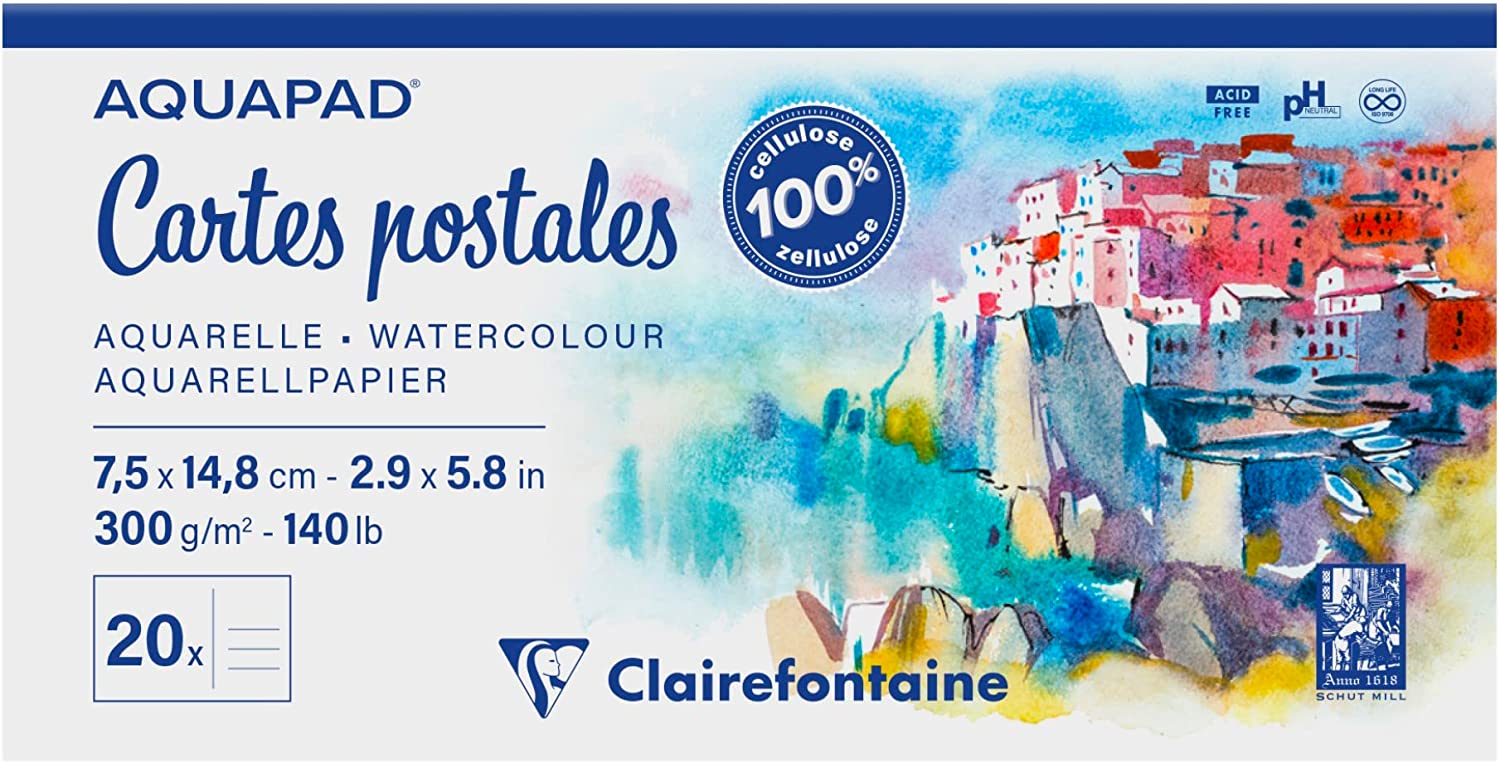 Clairefontaine Aquarelpapier 7,5 x 14,8 cm – 20 vellen 300 grams wit – Postkaarten