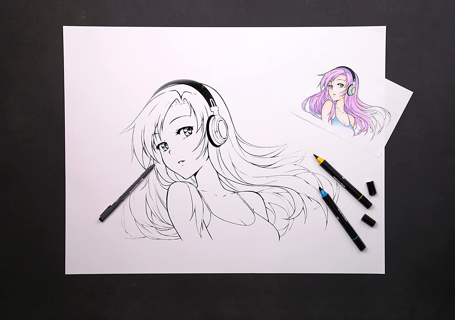 Manga Comics Layout & Illustration is een wit lichtgewicht papier met een gesloten glad oppervlak. Inktuitvloeiing wordt voorkomen om ervoor te zorgen dat alle lijnen schoon en nauwkeurig zijn. Of je nu Promarker Brush of Promarker gebruikt, kleuren komen rijk en levendig over en, indien gebruikt in combinatie met de Blender, kunnen onbeperkte toonvariaties worden verkend.