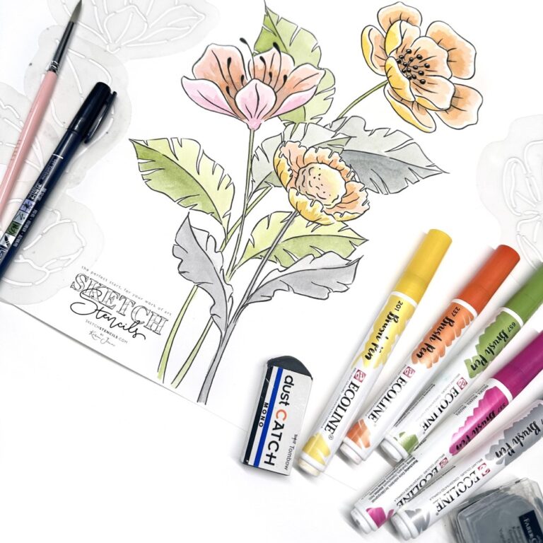 In deze workshop neem ik jou stap voor stap mee in het proces om een bloementekening te maken als deze. We starten met de SKETCH Stencils en we eindigen met een kunstwerkje om trots op te zijn.