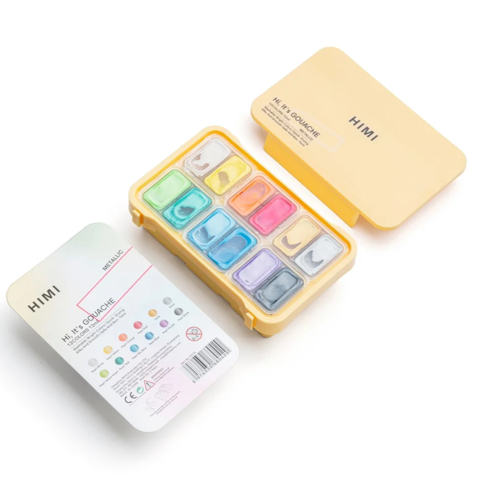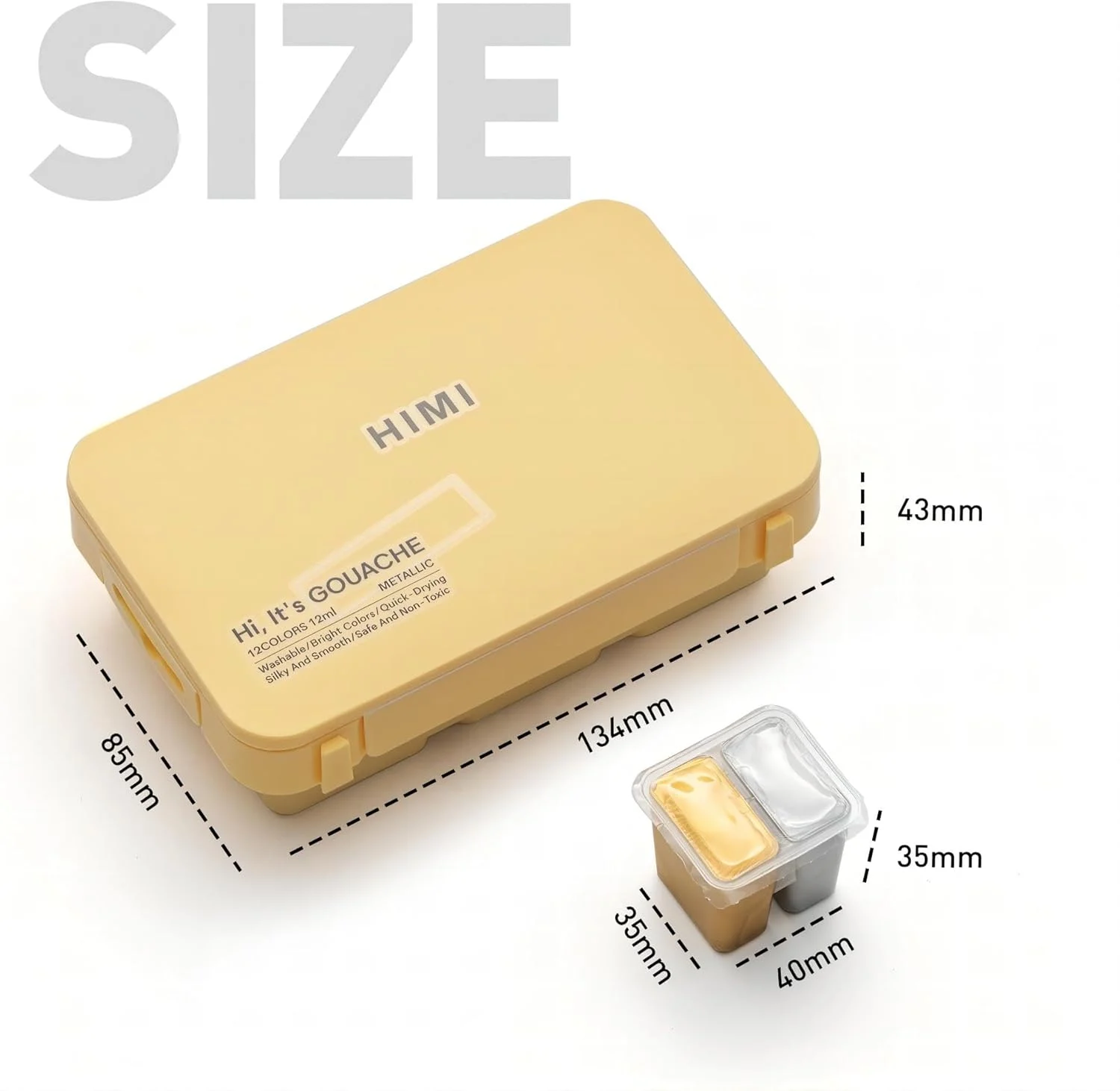 HIMI – Gouache Metallic – set van 12 kleuren 12g – Twin split cups