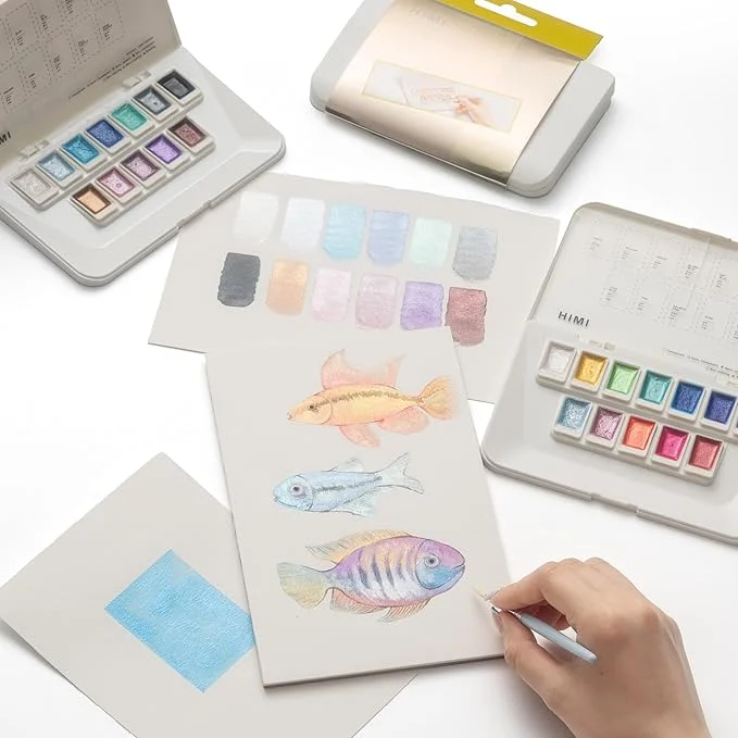 HIMI Metallic Parelmoer Aquarelverf is prachtige verf van hoge kwaliteit. In deze set zitten 12 prachtige kleuren. De napjes zitten in een handig doosje met uitklapbare deksel. Handig voor op reis. Zeer geschikt voor mixed media projecten en aquarelleren.