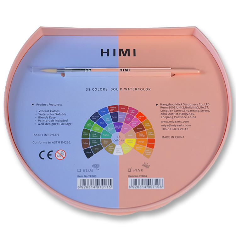 HIMI Solid Watercolor Aquarelverf – set van 38 kleuren + penseel – Blue