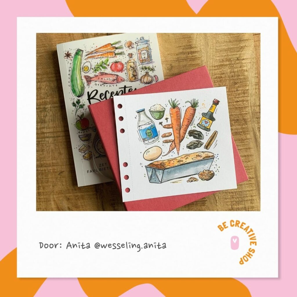 In het nieuwe boek van Carla Kamphuis (Recepten tekenen) staan een heleboel voorbeelden om zelf recepten en eten te tekenen. Daarnaast staan er ook een aantal leuke recepten in. Waaronder een recept voor carrot cake. Aangezien ik zelf worteltjes cake heel lekker vind besloot ik deze te tekenen en misschien zelfs binnenkort wel een keer te maken.