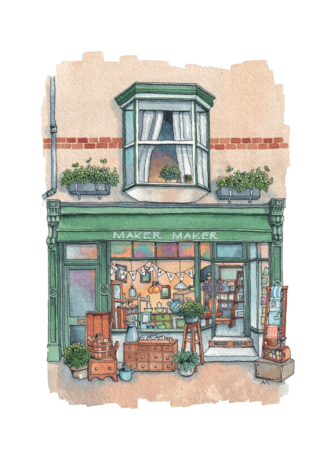 Urban Anna, the alias of Astrid Wielinga, is a self-taught illustrator and watercolour artist. She started painting watercolours in 2020. Her mission is to make the everyday magical! In her artwork she likes to capture the beauty of vibrant urban architecture from all over the world. She draws cafes, shopfronts and other vivid facades, and then uses watercolour to bring the worlds she creates to life. Astrid lives and works in Heerenveen, the Netherlands. Follow @urbananna20 for more.