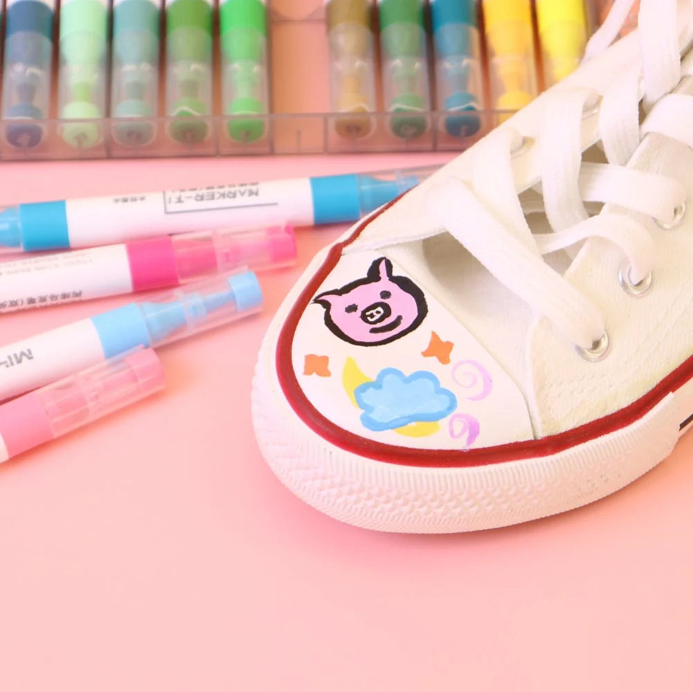 12 Levendige kleuren: Ervaar een rijk spectrum aan kleuren die op elk oppervlak opduiken. Deze markers leveren levendige resultaten. Maak je klaar om je fantasie tot leven te brengen!
