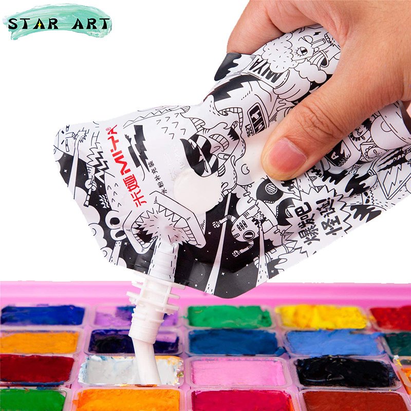 Door dit uniek ontwerp met draaidop houdt je gouache-verf nat en romig voor prachtige schilderwerkjes, draagbaar formaat, gemakkelijk mee te nemen, perfect om binnen of buiten te leren schilderen. Je kunt natuurlijk de gouache direct vanuit de refill op een verfpallet spuiten en lekker gaan schilderen.