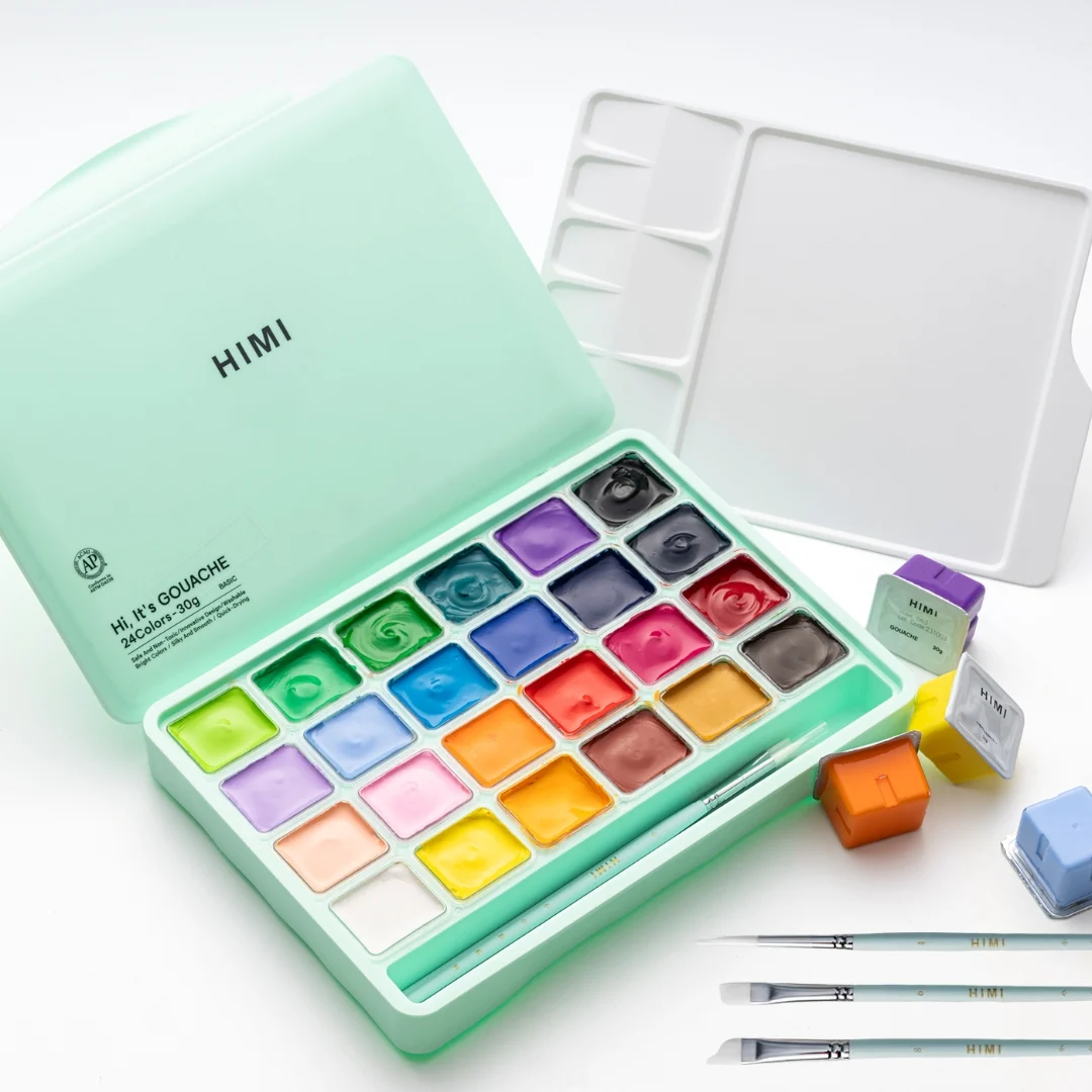 De nieuwe gouache-verfset wordt geleverd met een eenvoudig palet.