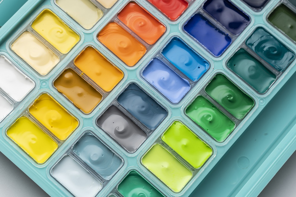 De nieuwe gouache-verfset wordt geleverd met een eenvoudig palet en kleurenkaart.