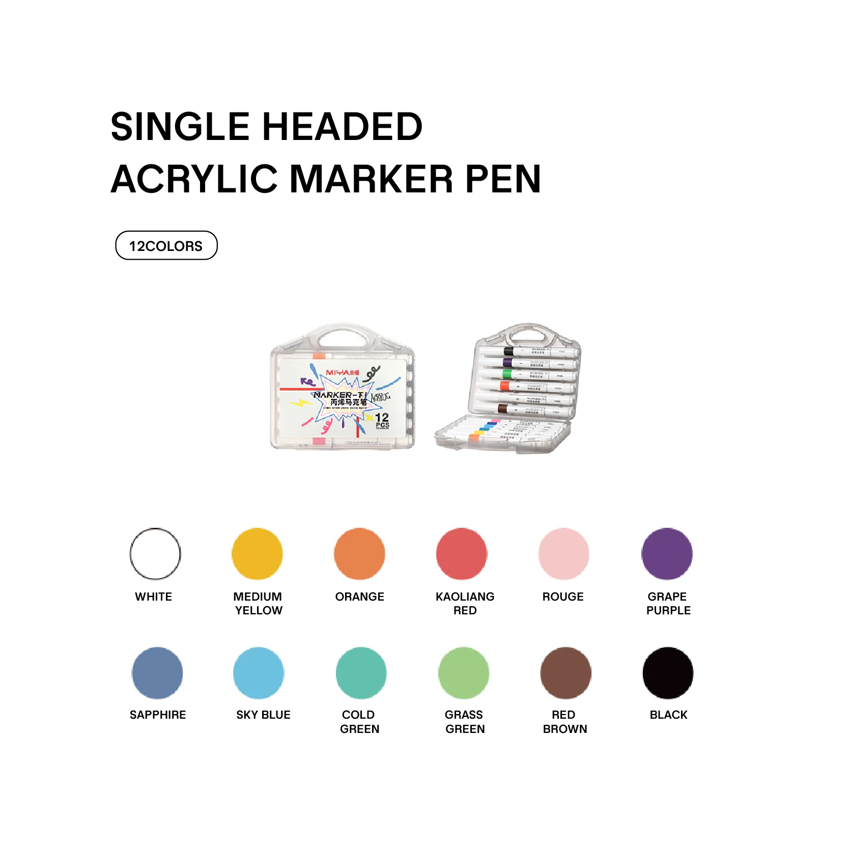 MIYA HIMI Marker-T Acrylmarkers Paint Markers 2mm – 12 kleuren