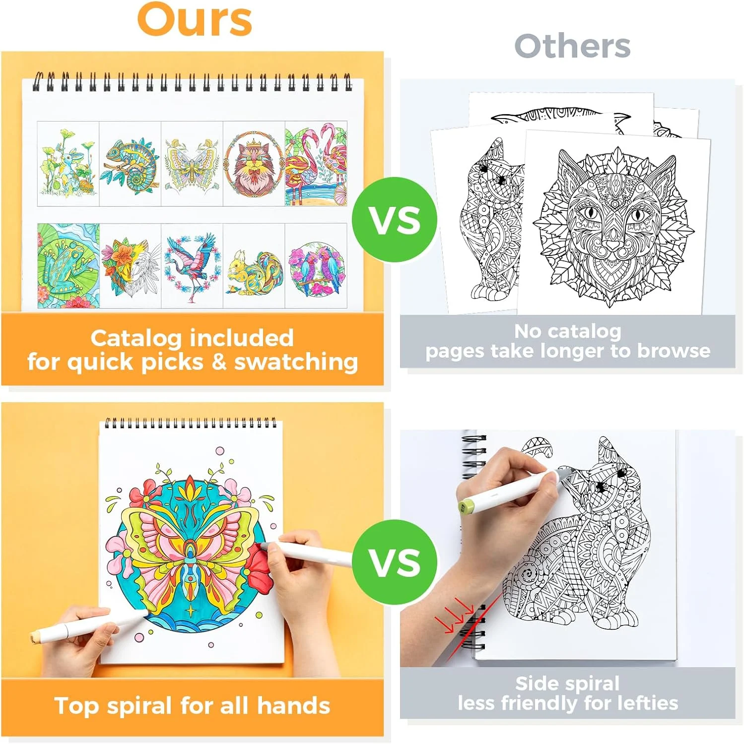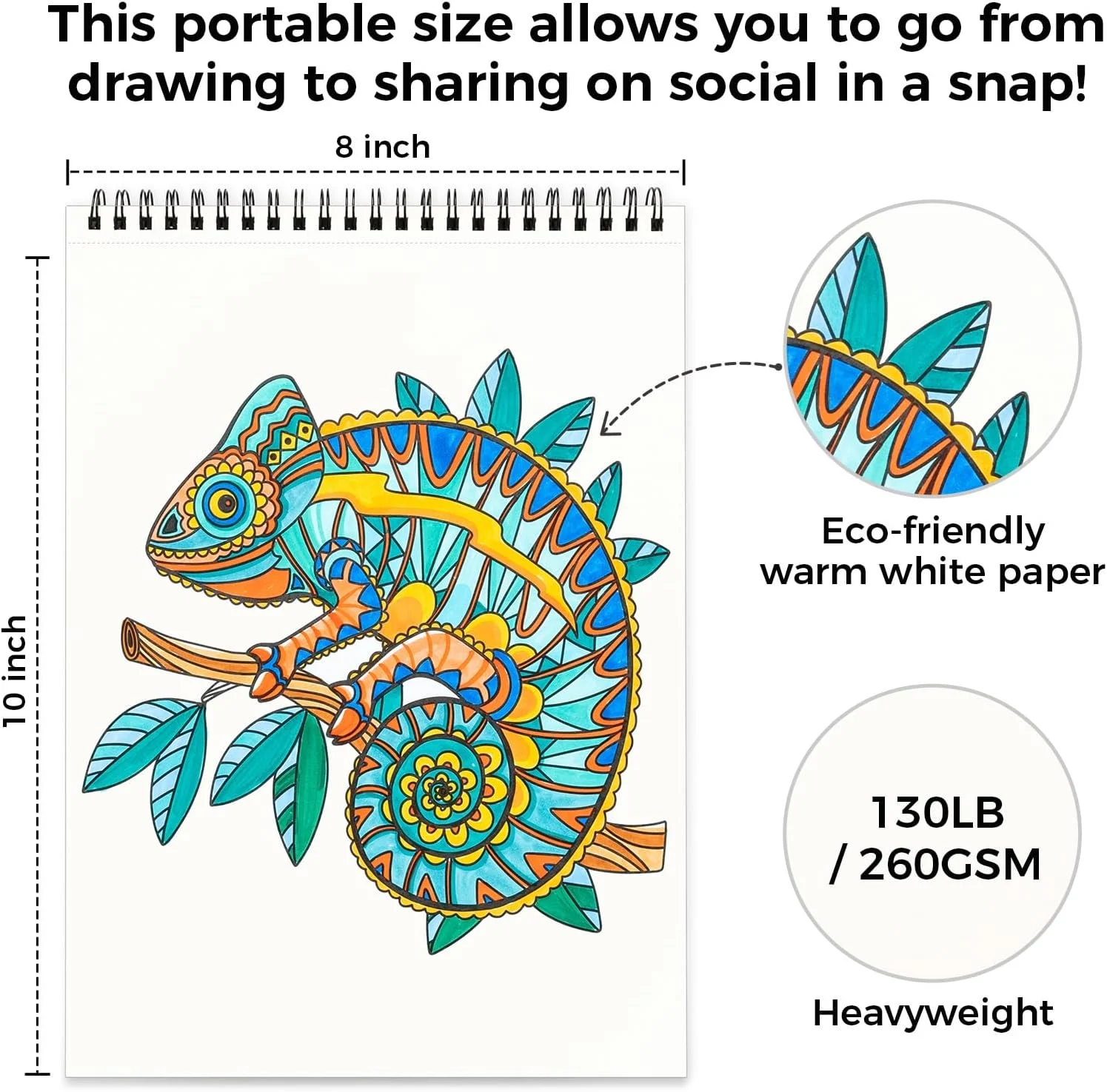 Milieuvriendelijk warmwit dubbelzijdig papier. Gemaakt van milieuvriendelijk, dubbelzijdig papier, heeft elke pagina een rustgevende warm witte kleur die vermoeide ogen helpt verminderen tijdens lange kleursessies. De gladde textuur is ideaal voor diverse media, waaronder markers op alcoholbasis, markers op waterbasis en zelfs paintmarkers, waardoor je creativiteit grenzeloos de vrije loop kan laten. Perfect voor al je artistieke behoeften.