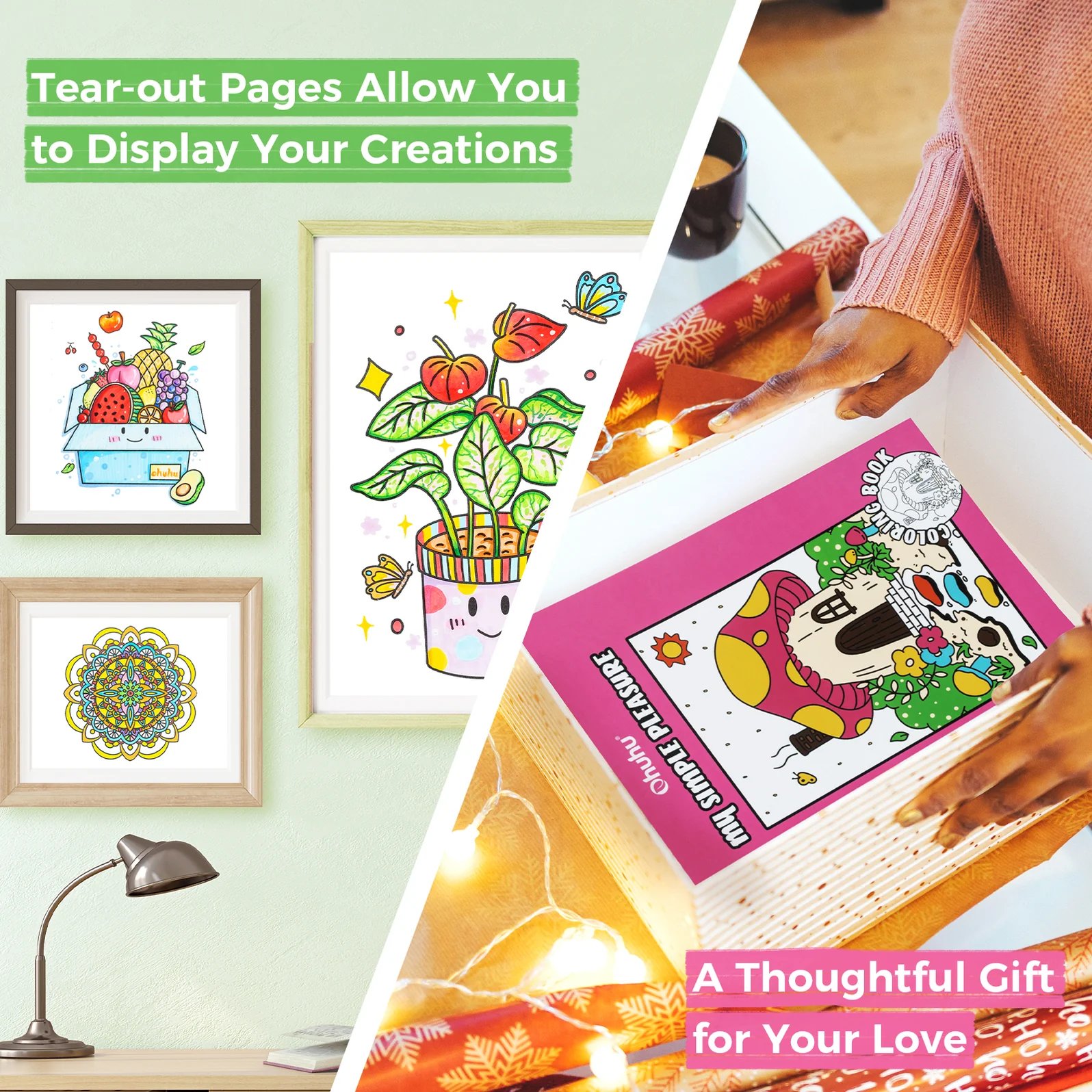 Dubbelzijdige pagina’s met bleed-proof papier. Ontworpen met doordrukbestendige, dubbelzijdige pagina’s, zodat je vrij aan beide kanten kunt kleuren zonder je zorgen te maken over doordrukkende inkt. Met 20 vellen (40 kleurpagina’s) heb je volop ruimte om te creëren. Bovendien geeft de handige indexpagina je een voorproefje van alle ontwerpen, waardoor je gemakkelijk je volgende pagina kunt kiezen op basis van je stemming of je kleurenschema van tevoren kunt plannen voor een soepeler en leuker creatief proces.