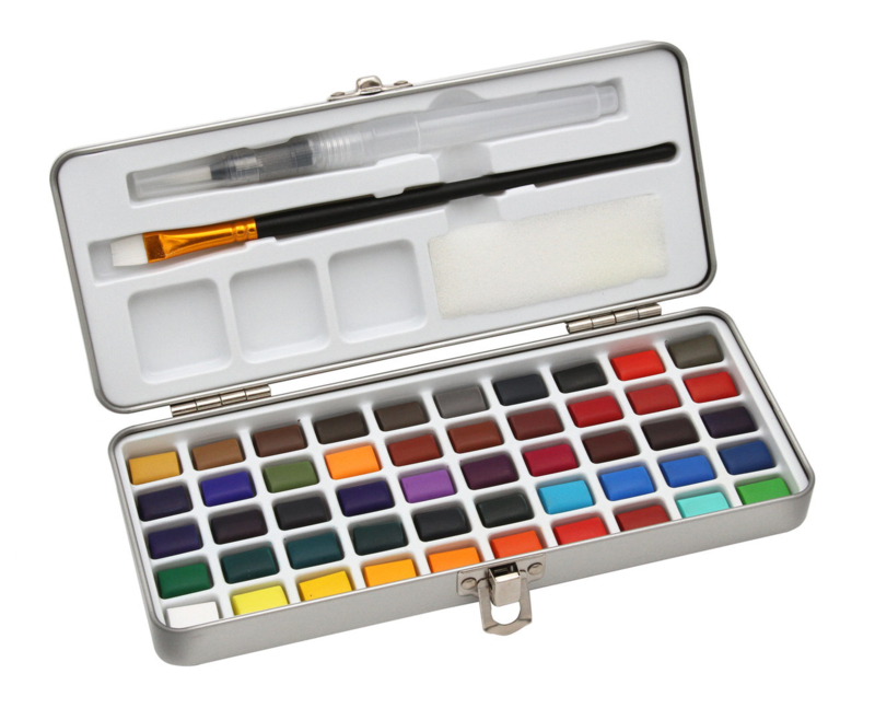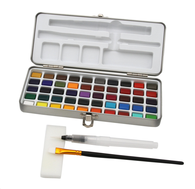 Kleurpalet: je ontvangt 50 hoogwaardige aquarelverven in halve nappen. De kleursets zijn coloristisch zinvol samengesteld. De aquarels zijn duurzaam en behouden de helderheid voor lange tijd.