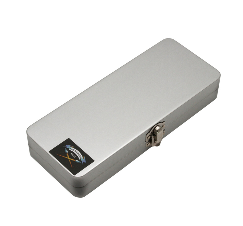 Klaar om te schilderen: met deze praktische en mooie metalen doos ben je goed uitgerust voor je aquarel. De zorgvuldig gesorteerde aquarel kleuren van zeer goede kwaliteit en de bijgeleverde penseel zijn gewoon een genot. Schilderen met de waterbrush is bijzonder eenvoudig: vul de tank één keer en oefen dan lichte druk uit op de punt en je bent klaar om te schilderen. Om schoon te maken, oefent je eenvoudig lichte druk uit op de borstel over een doek en “wast” de kleur uit de borstel, en ga je op dezelfde manier verder met de volgende kleur. Nooit meer water verversen, geen omgeslagen bekers meer! Oefen in het begin een beetje, maar je zult snel merken hoeveel druk de borstel nodig heeft!
