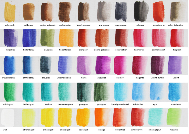 Veelzijdig: als instap in het aquarelschilderwerk of voor het vullen van het eigen kleurassortiment – de aquarelverf overtuigt door geweldige kleuren. De kleuren zijn geschikt voor de ambitieuze hobbykunstenaar en voor de ervaren professionals. De grote keuze aan kleuren maakt een breed scala aan kleuren mogelijk. Alle kleuren zijn nog onderling mengbaar, zodat er geen wensen overblijven en een oneindig kleurenpalet beschikbaar is.