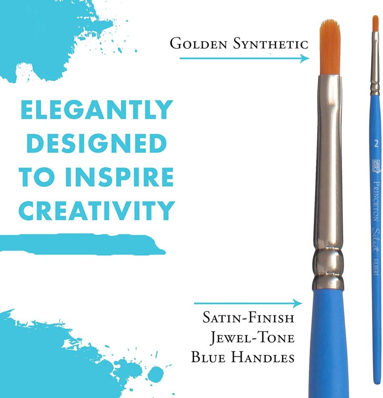 Select Artiste, gemaakt door de fijne vakmensen van Princeton, is een uitgebreide lijn van 29 verschillende vormen, 108 individuele penselen gemaakt voor olie-, acryl- en aquarellisten. Nu kun je vele technieken op bijna elk oppervlak ontdekken. Met gesatineerde, juwelkleurige, blauwe handvatten en zilveren adereindhulzen is Select net zo mooi om naar te kijken als om mee te schilderen.