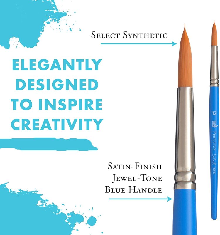 Select Artiste, gemaakt door de fijne vakmensen van Princeton, is een uitgebreide lijn van 29 verschillende vormen, 108 individuele penselen gemaakt voor olie-, acryl- en aquarellisten. Nu kun je vele technieken op bijna elk oppervlak ontdekken. Met gesatineerde, juwelkleurige, blauwe handvatten en zilveren adereindhulzen is Select net zo mooi om naar te kijken als om mee te schilderen.