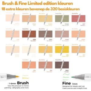 De Ohuhu Alcohol based markers beschikken over verschillende penseelpunten. De flexibele brush tip zorgt ervoor dat het voelt alsof je met een marker op waterbasis werkt, maar dankzij de alcoholbasis van de marker kun je de kleuren direct blenden zonder water.