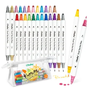 Deze Ohuhu Dual Tip Brush markers met dubbele punt zijn een must-have voor je volgende meesterwerk. Gebruik de penseelpunt voor kleuren, schaduwen en mengen, en de fineliner punt voor kleinere details. Je kunt het allemaal doen met één marker! Verkrijgbaar in verschillende sets.