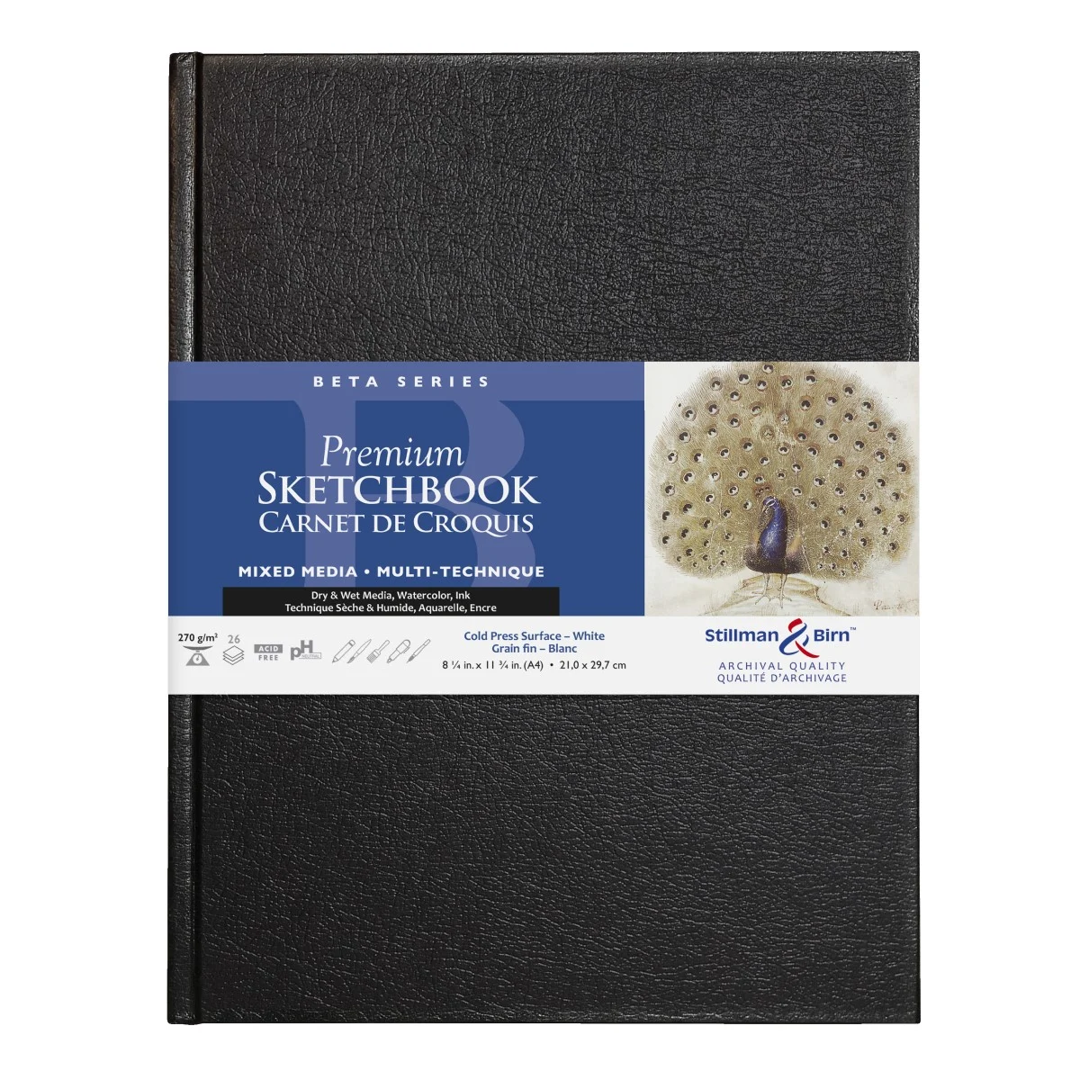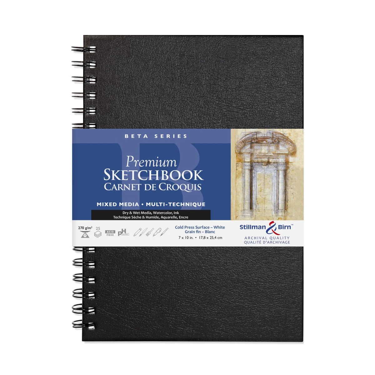 Het papier wat in de schetsboekjes van Stillman & Birn wordt gebruikt is dubbel gelijmd. De eerste keer wanneer de papierpulp wordt gemengd en vervolgens nog een keer in de eindfase wanneer het papier aan de oppervlakte wordt gelijmd. Deze dubbele lijming maken het papier uitermate geschikt voor mixed media omdat ook natte technieken gebruikt kunnen worden. Daarnaast hoef je niet bang te zijn voor het doorlekken van inkt naar de volgende pagina. De softcovers zorgen ervoor dat je het sketchbook helemaal plat kunt leggen. Het mixed media sketchbook bevat 46 vellen. Gebonden in de VS.