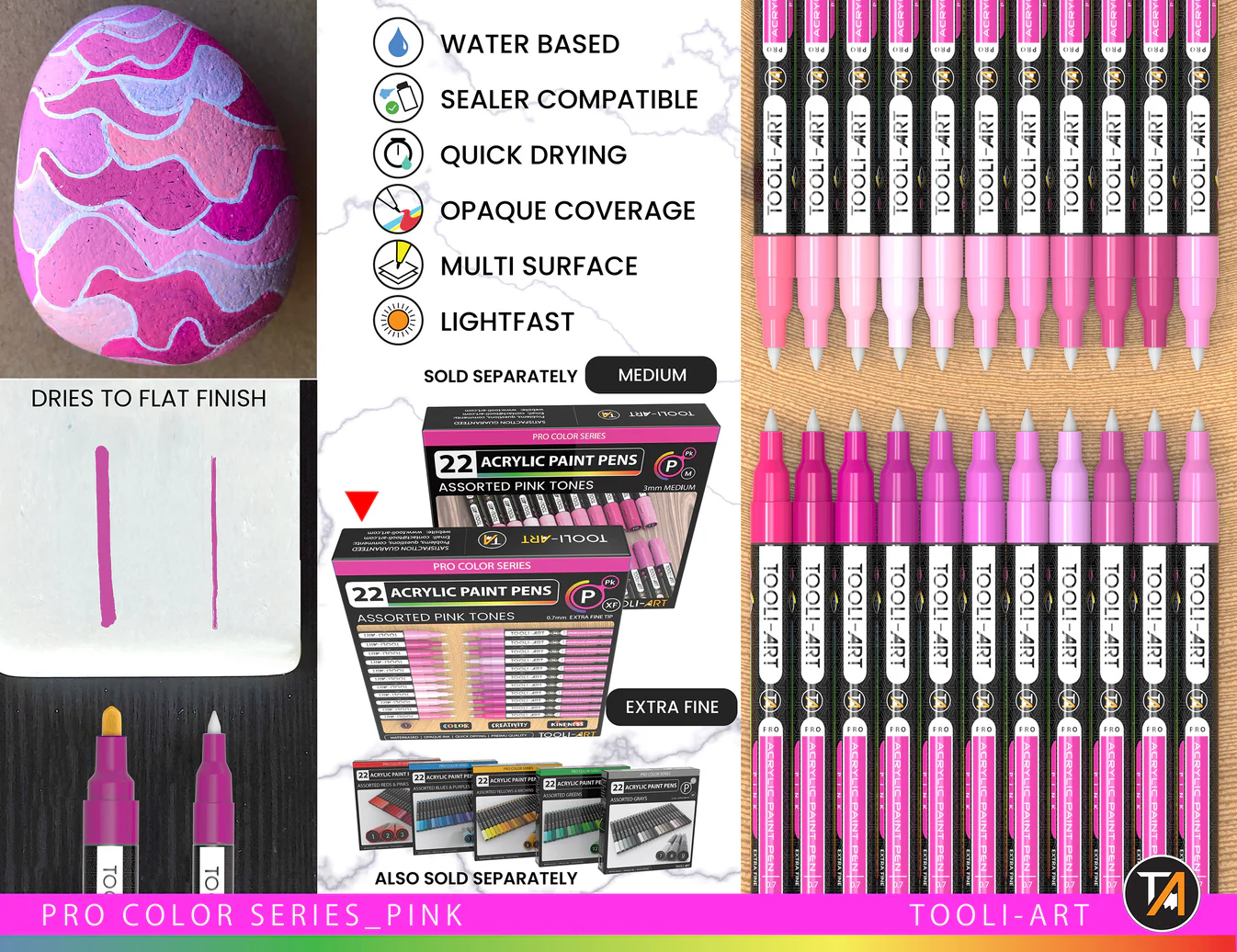 TOOLI-ART Acrylmarker Pro Color XF 0.7mm set van 22 – Rose tinten