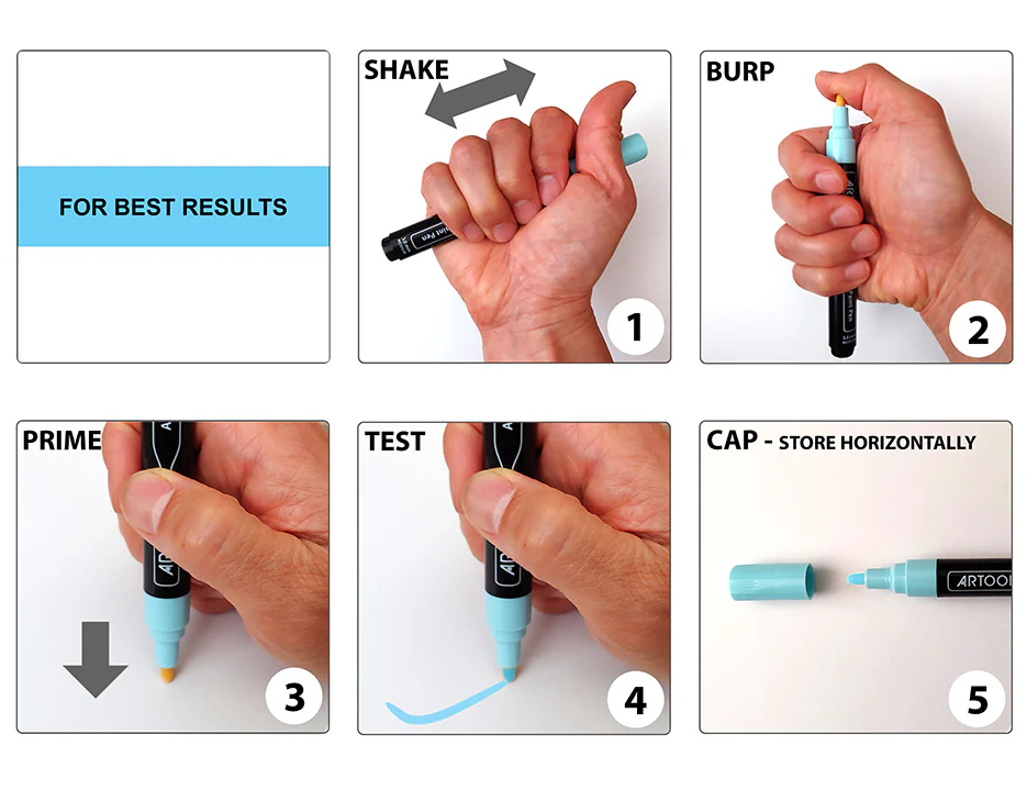 VEILIG & NIET-GIFTIG – Zuurvrij, op waterbasis en veilig voor iedereen. Voldoet aan de veiligheidsnormen ASTM D-4236 en EN-71. Ideaal voor kunstenaars, studenten, professionals, tieners, volwassenen. Vermijd direct contact met voedsel en kinderen jonger dan 3 jaar.