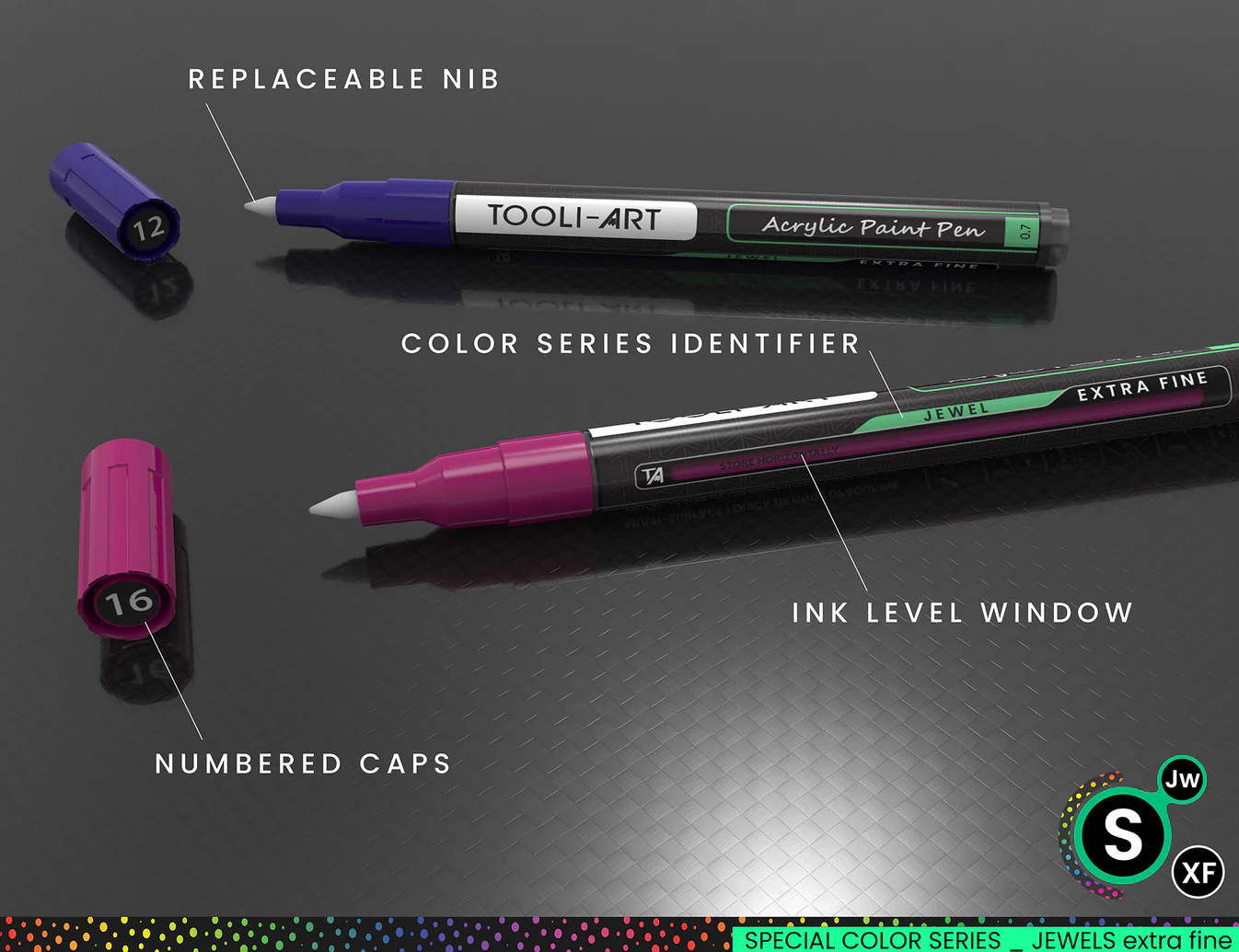 TOOLI-ART Acrylmarker Special Color XF 0.7mm set van 24 – Jewel Dark