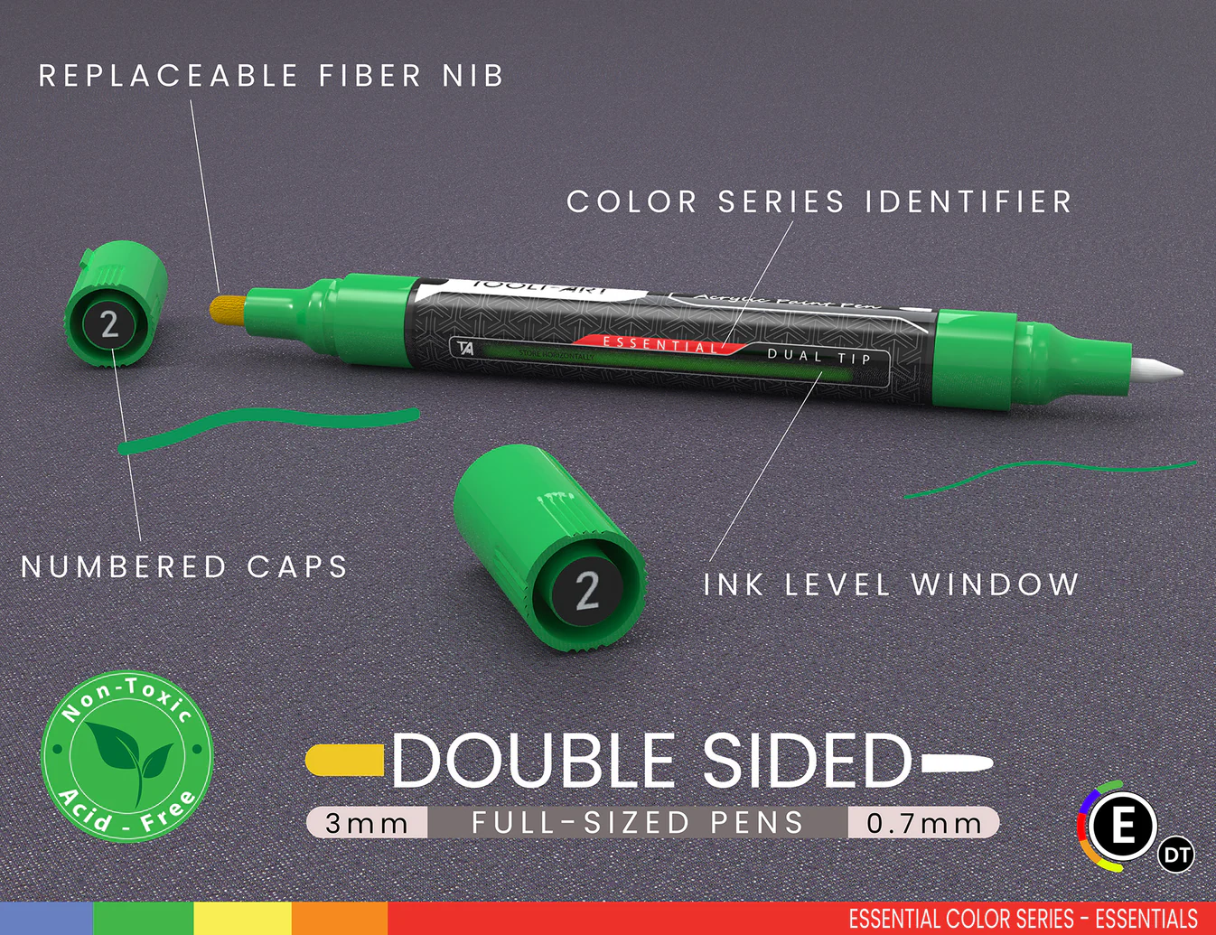 VEILIG & NIET-GIFTIG – Zuurvrij, op waterbasis en veilig voor iedereen. Voldoet aan de veiligheidsnormen ASTM D-4236 en EN-71. Ideaal voor kunstenaars, studenten, professionals, tieners, volwassenen. Vermijd direct contact met voedsel en kinderen jonger dan 3 jaar.