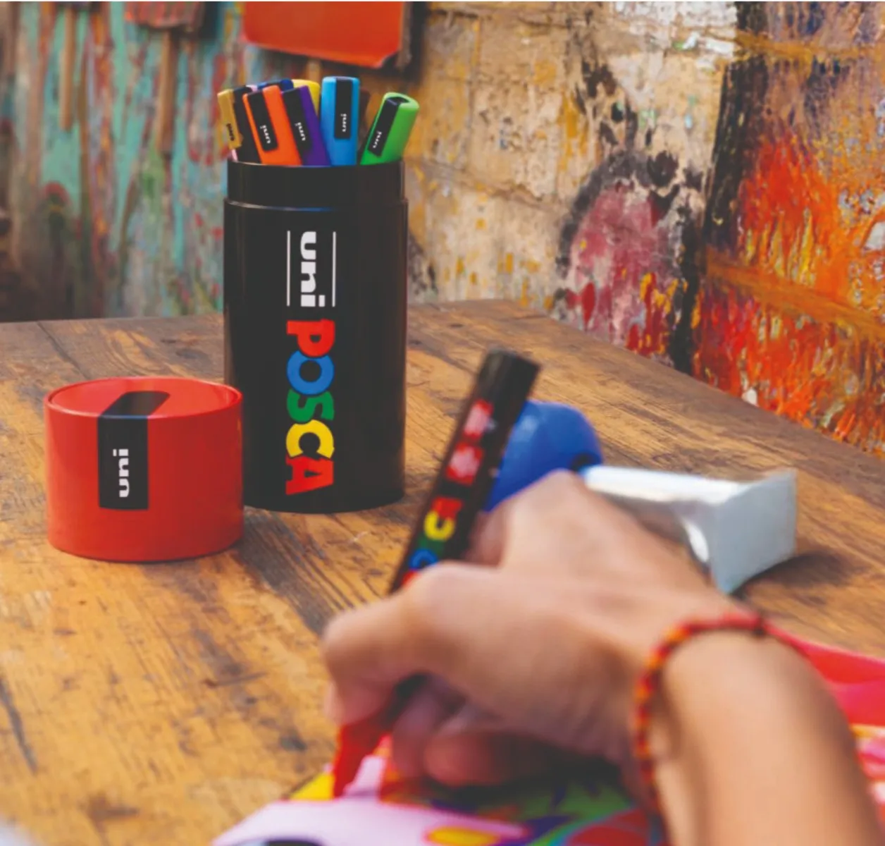 Ontdek de Uni Posca Pigment Marker Koker Set van 13 stuks, een mooie collectie hoogwaardige Posca paint markers in een metalen koker in de vorm van een grote Posca-marker. Deze set is ideaal als cadeau of als starterset voor creatieve projecten. De set bevat 13 basiskleuren met verschillende puntsoorten, zodat je zowel fijne details als grote kleurvlakken kunt maken.